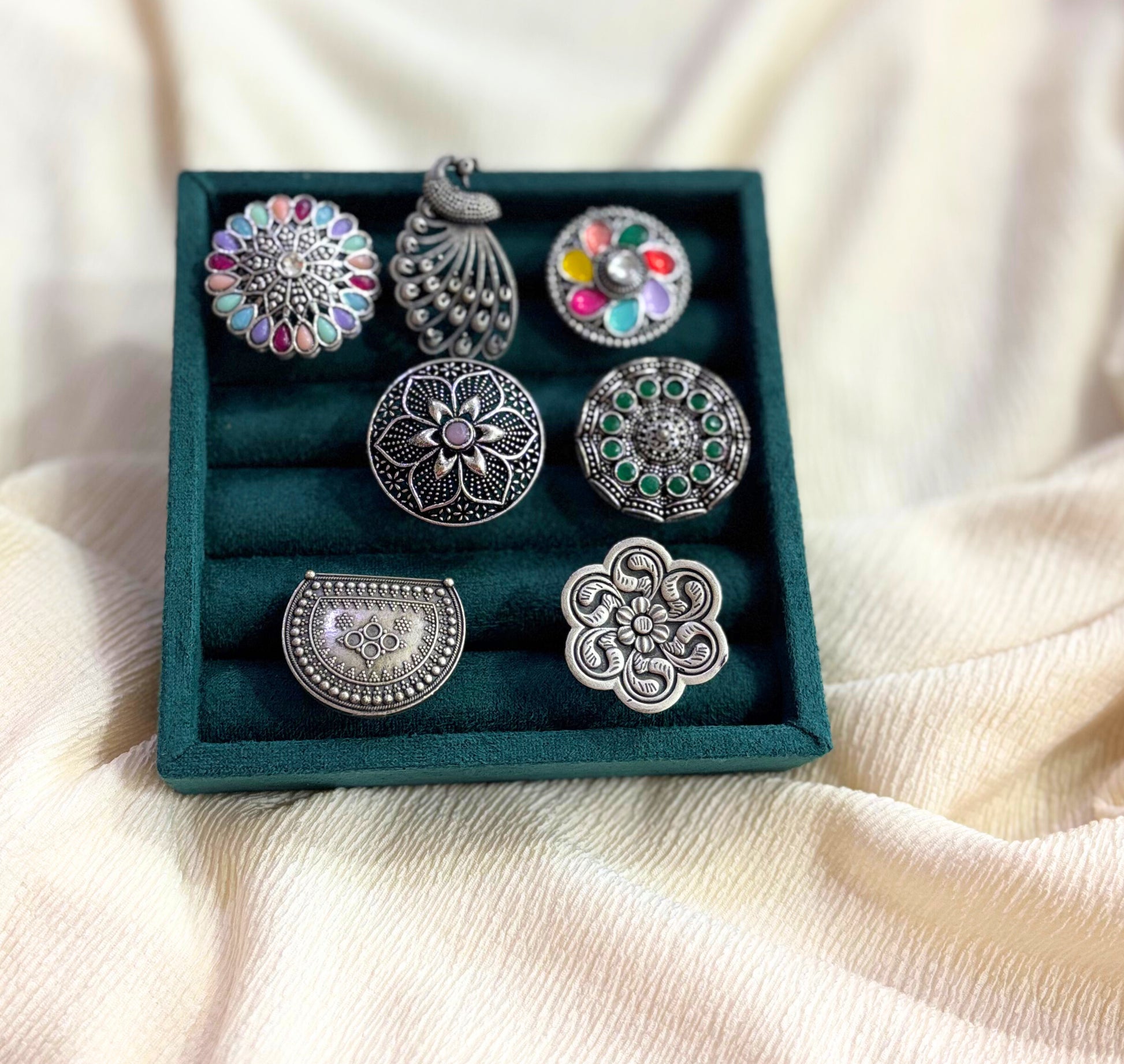 Celebrate timeless beauty with our Oxidised Double Flower Ring.
